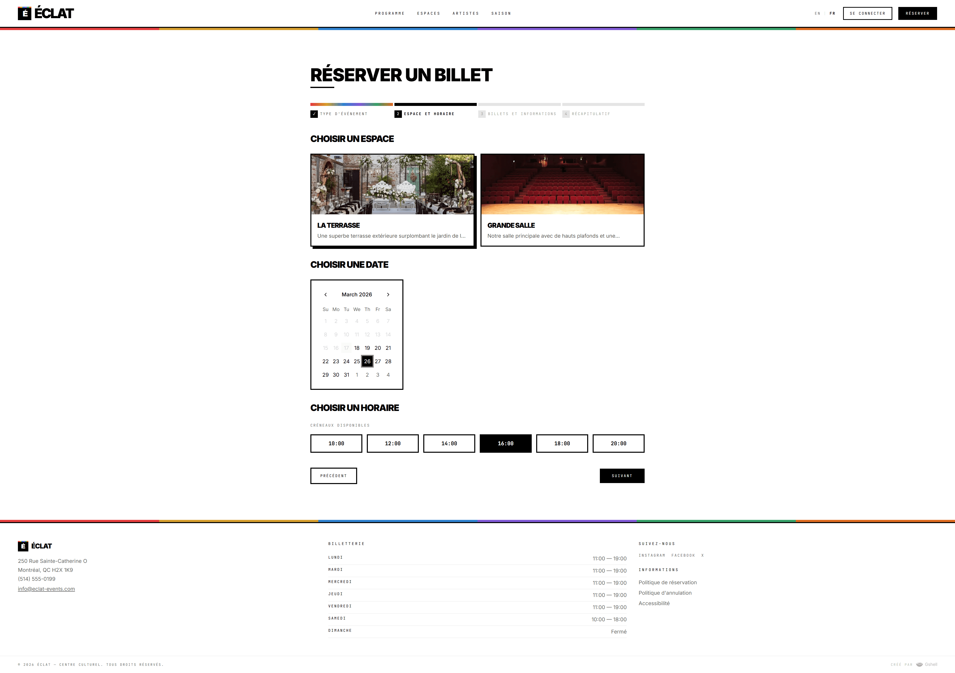Per-reservation capacity mode across five venues (50–500 seats). Conflict detection prevents overselling automatically.